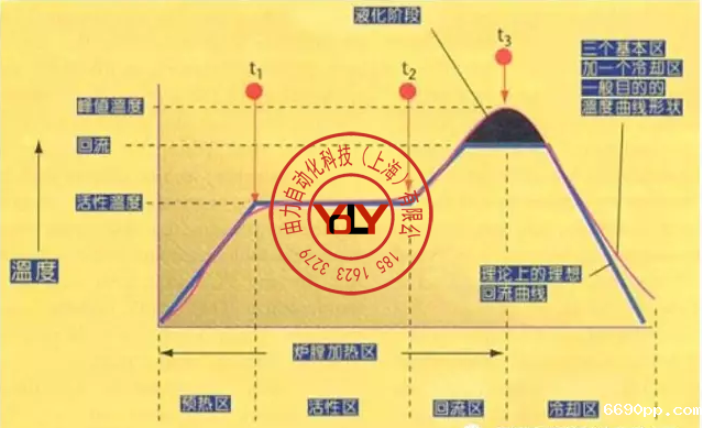 (图二、理论上理想的回流曲线由四个区组成,前面三个区加热、最后一个区冷却)