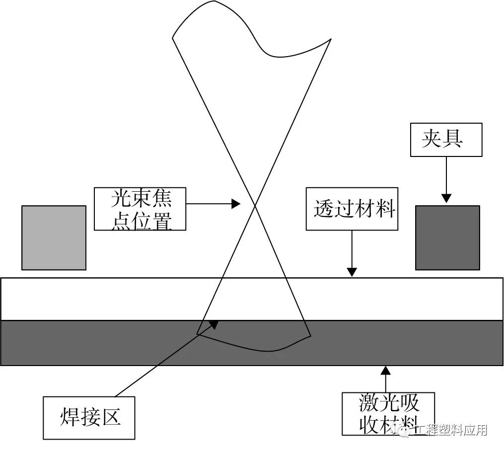 (1)将一个透光的塑料焊件和一个吸光或添加了吸收剂的塑料焊件叠放在一起,利用夹具并施一定的压力使两个焊件接触面充分接触;