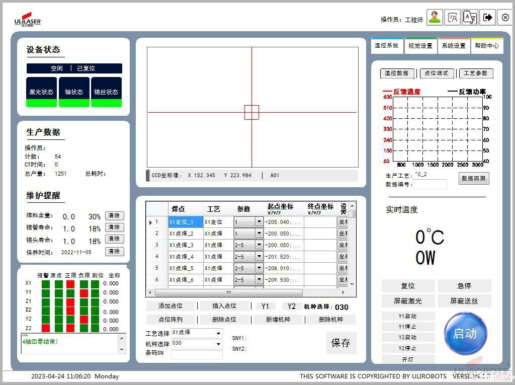 在激光焊锡设备的运行体系中,配套软件是实现精准操作、质量管控与效率提升的 “神经中枢”。优质的软件不仅能简化设备操作,更能通过算法优化解决焊接过程中的核心痛点,如送锡精度不足、温度波动导致的炸锡等问题。ULiLASER 激光焊锡软件凭借深度集成的功能设计,结合配套的高精度送锡丝模组,成为行业内软件赋能硬件的典范。