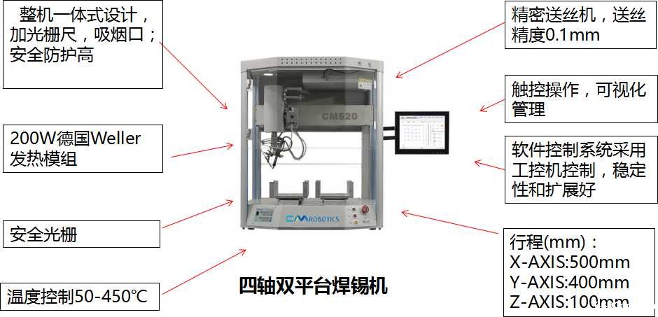 D、温度效率高,能在短时间达到溶锡的状态,适应喊锡机器人快速焊接的生产节拍要求。